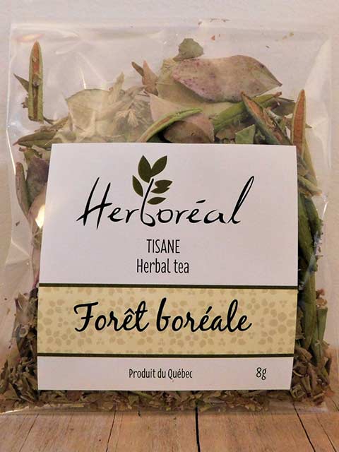 Ingrédients : feuilles de thé des bois, de thé du Labrador, de bleuet et de framboisier
